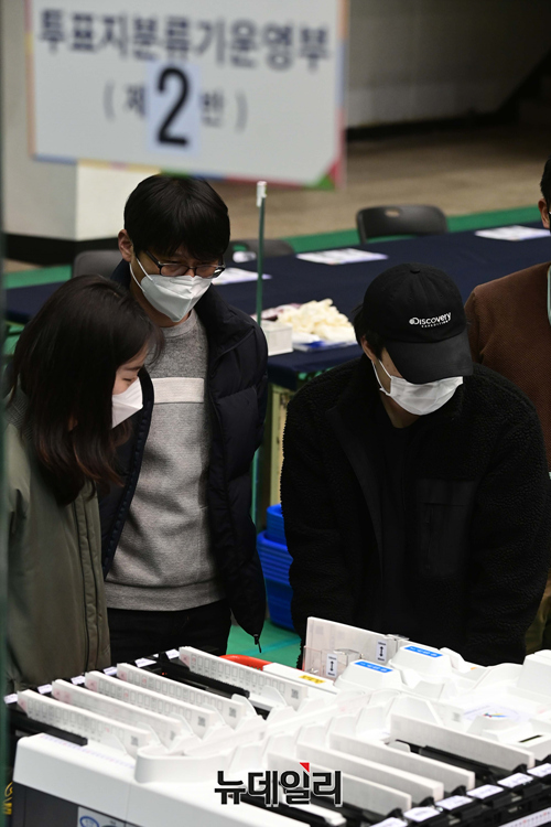 제20대 대통령선거를 하루 앞둔 8일 오후 서울 관악구 서울대학교 체육관에 마련된 개표소에서 선거관리위원회 관계자가 투표지분류기를 최종 모의시험을 하기 위해 전용 프로그램을 점검하고 있다.