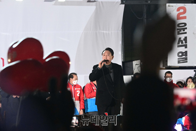 [포토] 유세 마지막 날 윤석열, 서울 유세 총력전
