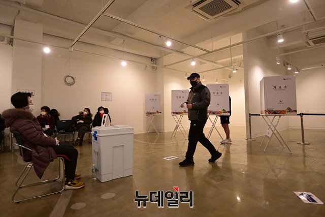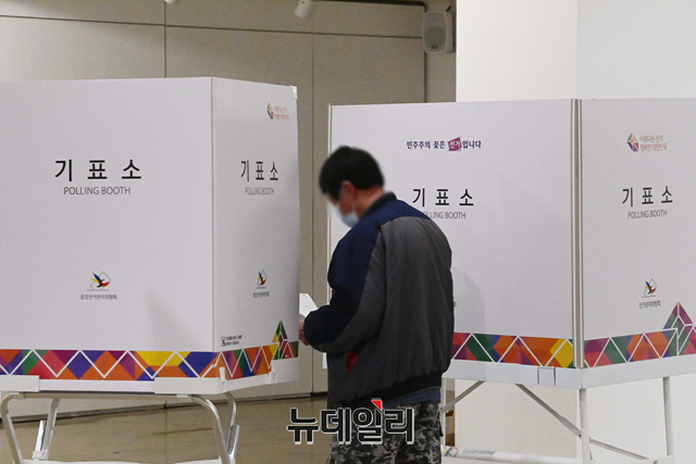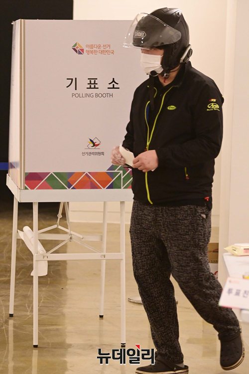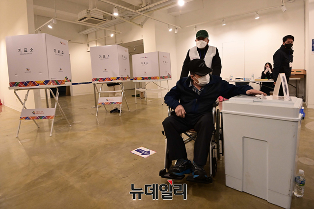 제20대 대통령선거 일인 9일 오전 서울 구로구민회관에 마련된 투표소에서 시민들이 투표를 하고 있다.선거관리위원회는 "기표소 안에서 투표지를 촬영 할 수 없고, 투표 인증샷은 투표소 입구 또는 포토존, 투표소 표지판 등을 활용해야 한다"고 말했다.코로나19 확진자와 격리자는 오후 5시 50분부터 외출이 가능하고, 일반 유권자 투표가 마친 후 오후 6시부터 7시 30분 사이에 투표를 행사 할 수 있다.이어 직접 투표함에 용지를 넣어야 된다. 투표를 마친 직후엔 격리장소로 복귀해야 한다.