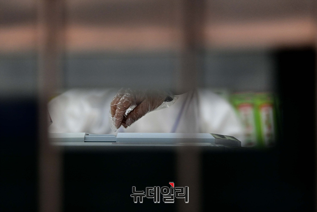 [포토] 투표하는 코로나19 확진자·자가격리 유권자