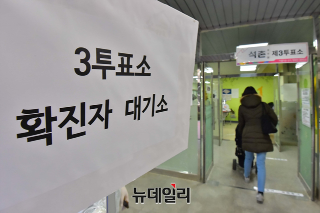 [포토] '확진자 투표 시작' 기표소 향하는 시민