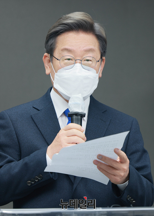 이재명 더불어민주당 대선 후보가 10일 오전 서울 여의도 중앙당사에서 20대 대통령 선거 패배 승복 선언을 하고 있다.