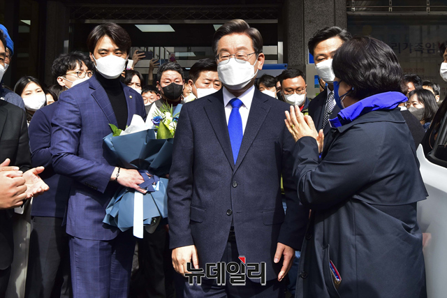 이재명 더불어민주당 대선후보가 10일 오후 서울 여의도 더불어민주당사에서 열린 선대위 해단식을 마치고 지지자들과 인사를 하고 있다.