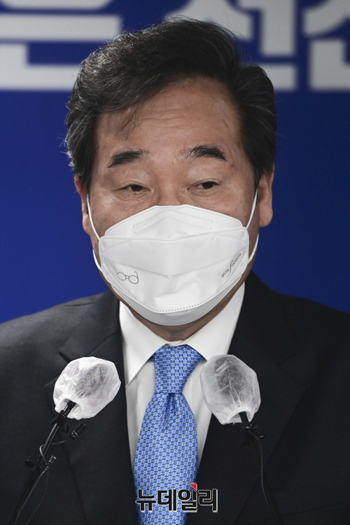 이낙연 더불어민주당 총괄선대위원장이 10일 오후 서울 여의도 더불어민주당사에서 열린 선대위 해단식에서 발언을 하고 있다.
