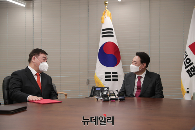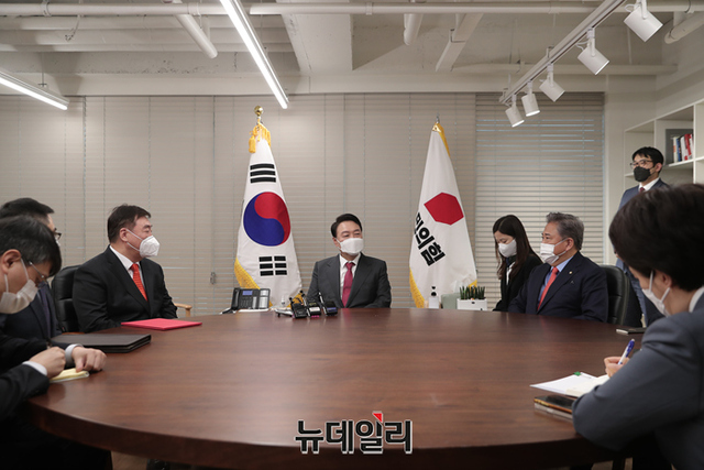윤석열 대통령 당선인이 11일 오전 서울 여의도 국민의힘 당사에서 싱하이밍 주한중국대사를 접견하고 있다. (사진=윤석열 캠프)