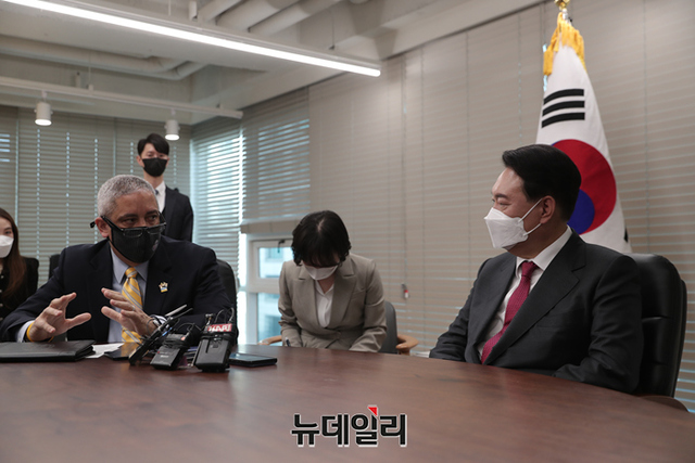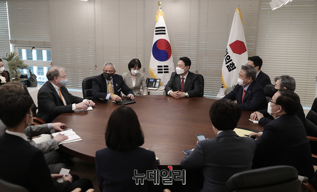 윤석열 대통령 당선인이 11일 오후 서울 여의도 국민의힘에서 크리스토퍼 델 코소 주한미국대사대리 를 접견하고 있다. (사진=윤석열 캠프)