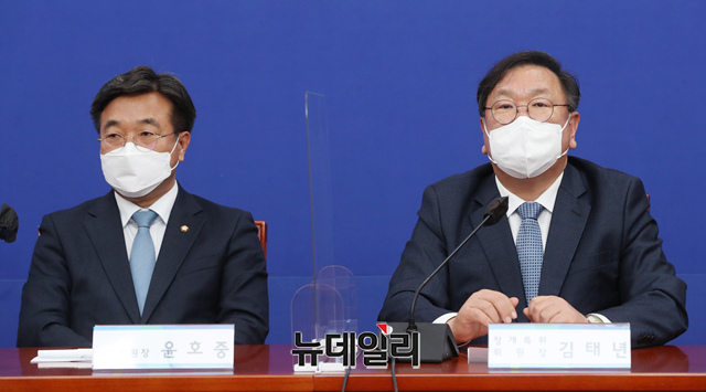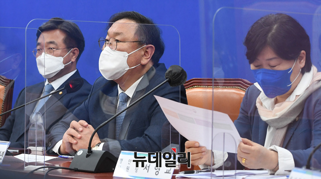 김태년 정치개혁특별위원회 위원장이 14일 오후 국회에서 열린 민생개혁법안 실천을 위한 상임위원장 및 간사단 연석회의에서 발언하고 있다. (사진=공동취재단)