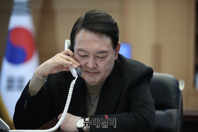[포토] 보리스 존슨 영국 총리와 통화하는 윤석열 당선인