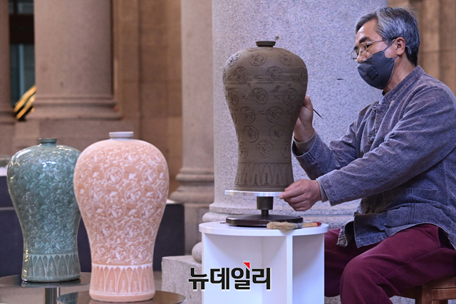 [포토] 청자 상감 시연하는 이은규 작가