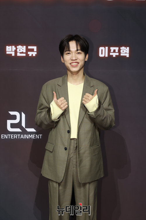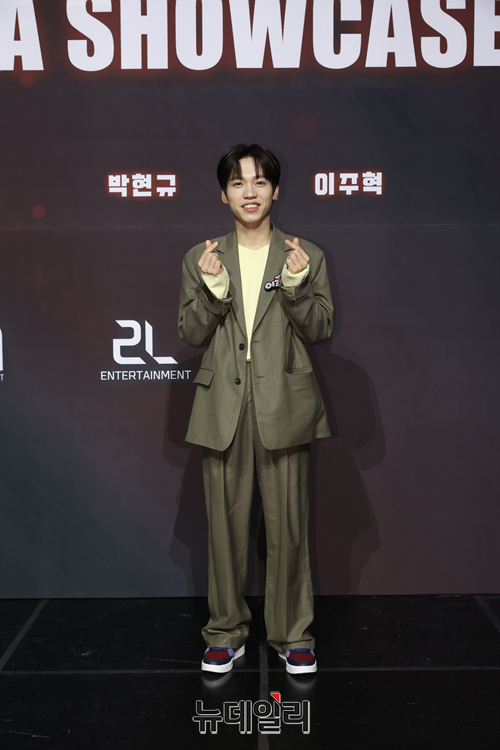 최근 종영한 JTBC 오디션 서바이벌 프로그램 '싱어게인-무명가수전 시즌2'에서 Top6에 든 이주혁이 15일 오후 온라인으로 열린 기자간담회에서 포토타임을 갖고 있다. (사진=MA엔터테인먼트)