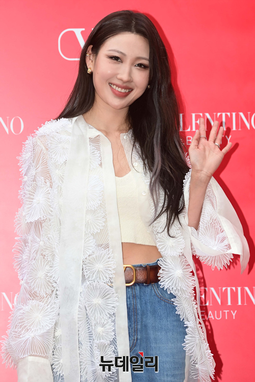 뷰티크리에이터 이사배가 15일 오후 서울 용산구 발렌티노 뷰티 팝업스토어에서 열린 오픈 행사에서 포즈를 취하고 있다.