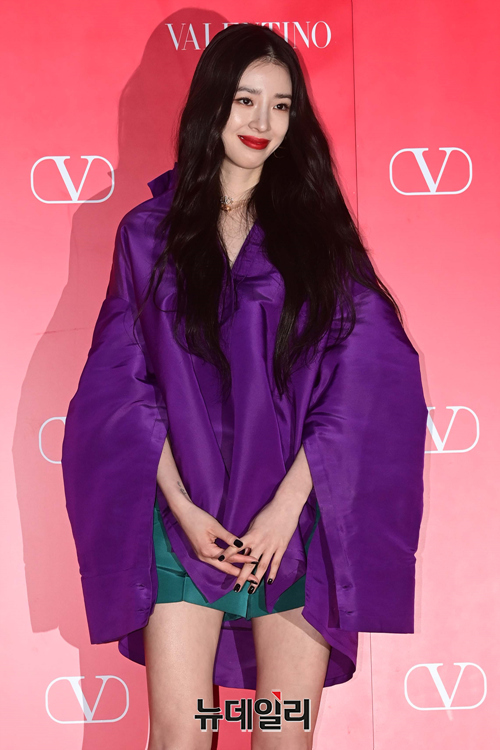 모델 아이린이 15일 오후 서울 용산구 발렌티노 뷰티 팝업스토어에서 열린 오픈 행사에서 포즈를 취하고 있다.