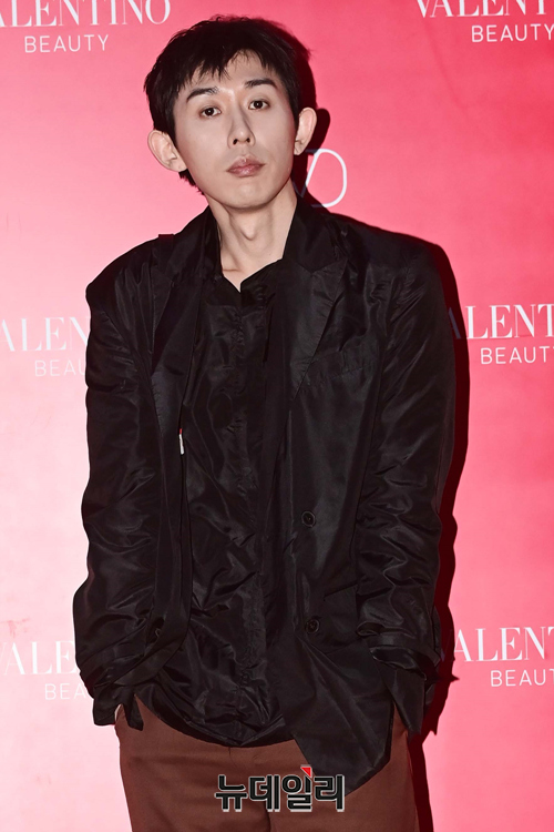 가수 겸 작곡가 코드 쿤스트가 15일 오후 서울 용산구 발렌티노 뷰티 팝업스토어에서 열린 오픈 행사에서 포즈를 취하고 있다.