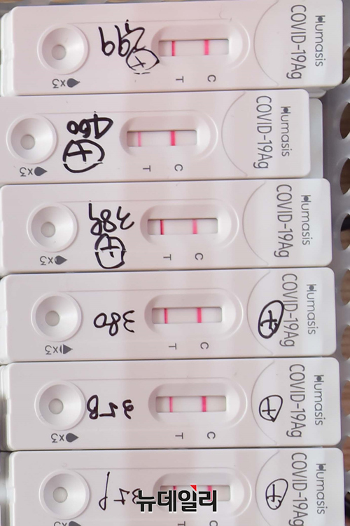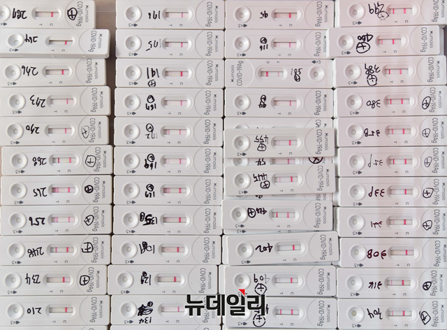 [포토] 신규확진자 첫 40만명 대, 양성 키트 분류 작업