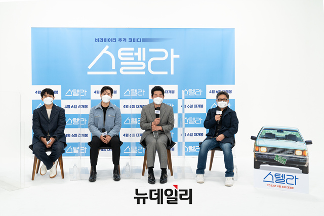'스텔라'는 옵션은 없지만 사연은 많은 최대 시속 50km의 자율주행차 스텔라와 함께 보스의 사라진 슈퍼카를 쫓는 버라이어티 추격 코미디로 4월 6일 개봉 예정. (사진=CJ ENM)