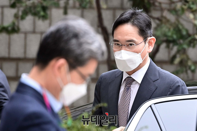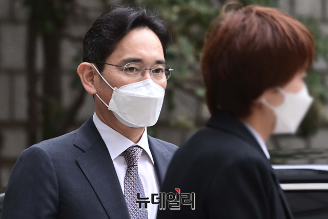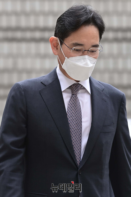 이재용 삼성전자 부회장이 18일 오전 서울 서초구 중앙지법에서 열린 공판에 출석하고 있다.