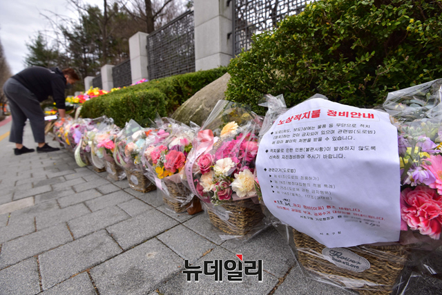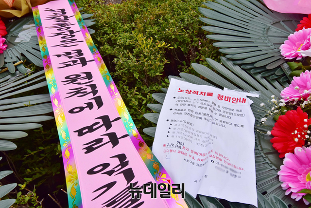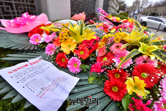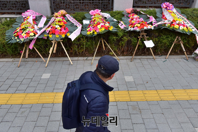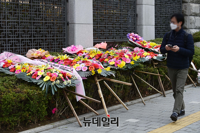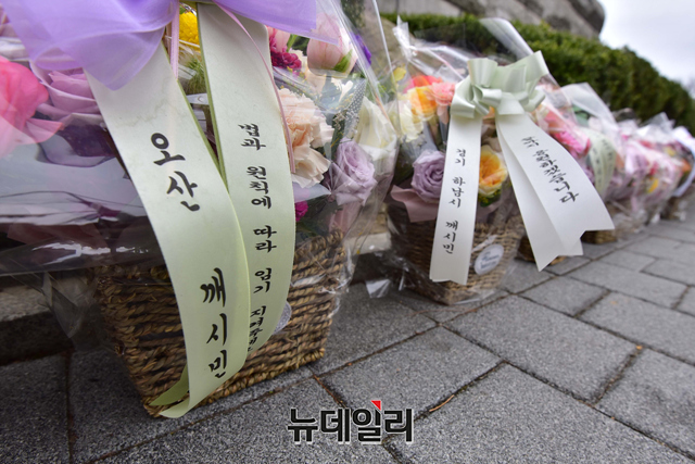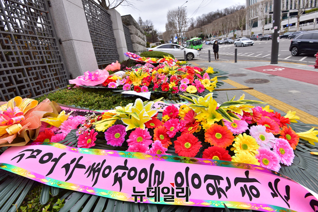 [포토] 대검찰청 앞에 놓인 김오수 총장 응원화환