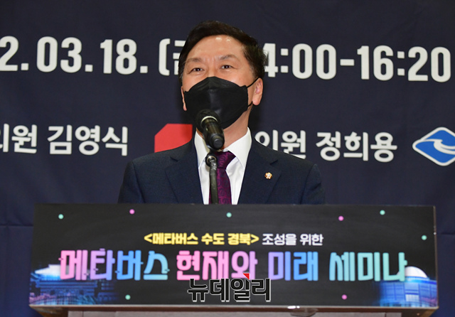 김기현 국민의힘 원내대표가 18일 오후 국회 의원회관에서 열린 '메타버스 수도 경북' 조성을 위한 메타버스 현재와 미래 세미나에서 축사를 하고 있다.