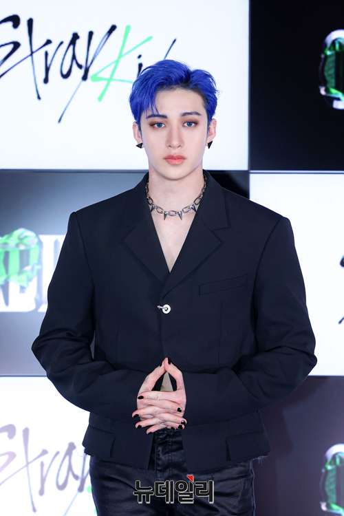 스트레이키즈 방찬이 18일 오후 온라인으로 열린 새 미니 앨범 '오디너리(ODDINARY)' 발매 기념 기자간담회에서 포즈를 취하고 있다.