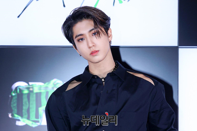 스트레이 키즈 멤버 한이 18일 오후 온라인으로 열린 새 미니 앨범 '오디너리(ODDINARY)' 발매 기념 기자간담회에서 포즈를 취하고 있다.