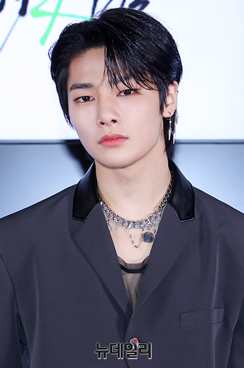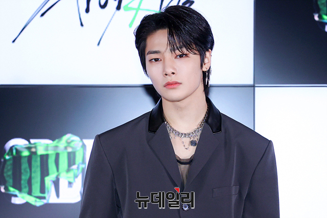 스트레이 키즈 멤버 아이엔이 18일 오후 온라인으로 열린 새 미니 앨범 '오디너리(ODDINARY)' 발매 기념 기자간담회에서 포즈를 취하고 있다.