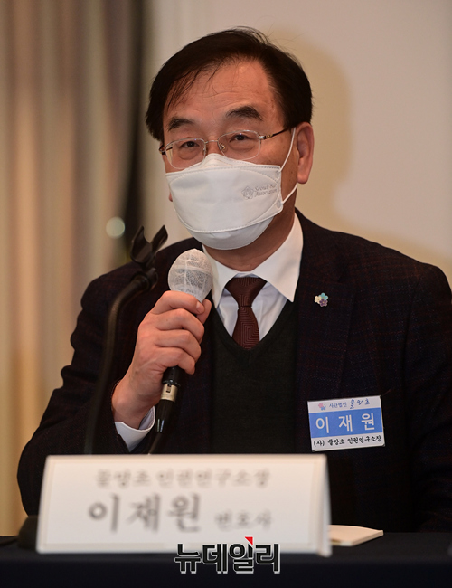 이재원 물망초 인권연구소장이 21일 오후 서울 중구 한국프레스센터에서 '남북교과서 편향과 왜곡, 그리고 통일한국이 지향할 교육'을 주제로 열린 물망초 인권세미나에서 인사말을 하고 있다.