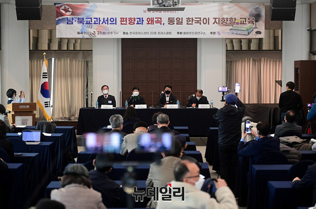 정광성 월간조선 기자가 21일 오후 서울 중구 한국프레스센터에서 열린 물망초 인권세미나에서 '북한교육의 거짓과 선동, 그리고 왜곡'을 주제로 발표하고 있다.