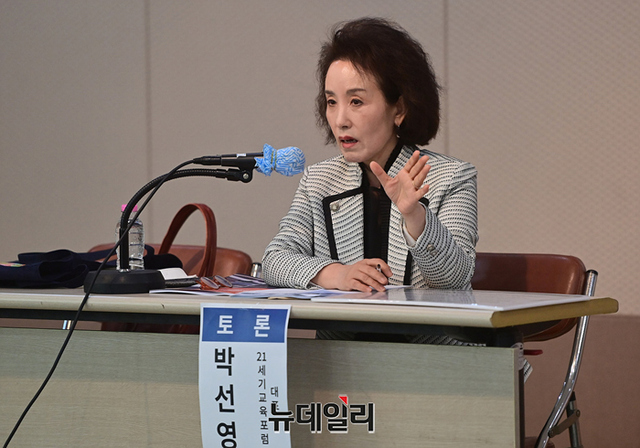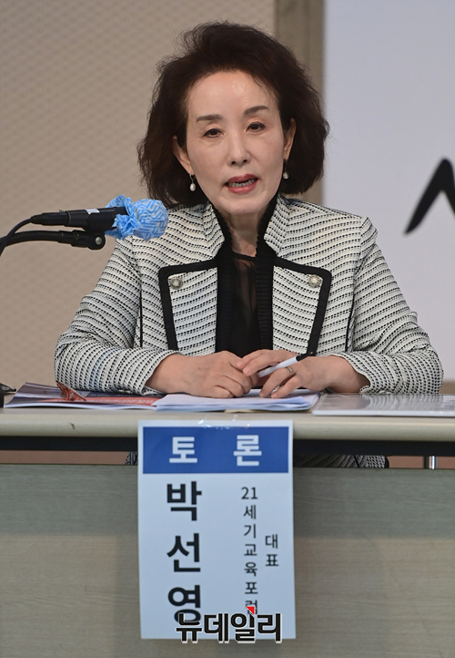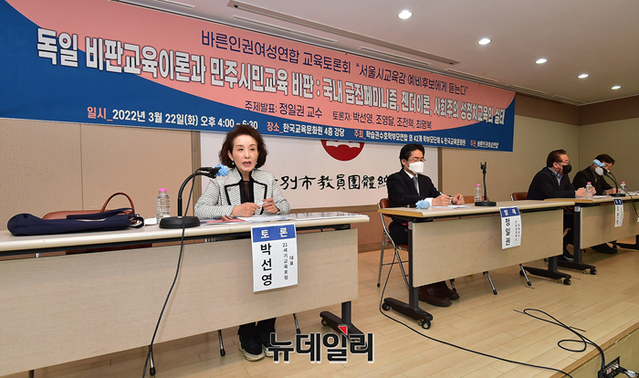 박선영 서울시교육감 예비후보가 22일 오후 서울 종로구 한국교육문화원에서 바른인권여성연합의 주관으로 열린 '서울시교육감 예비후보에게 듣는다' 공개토론회에서 발언하고 있다.