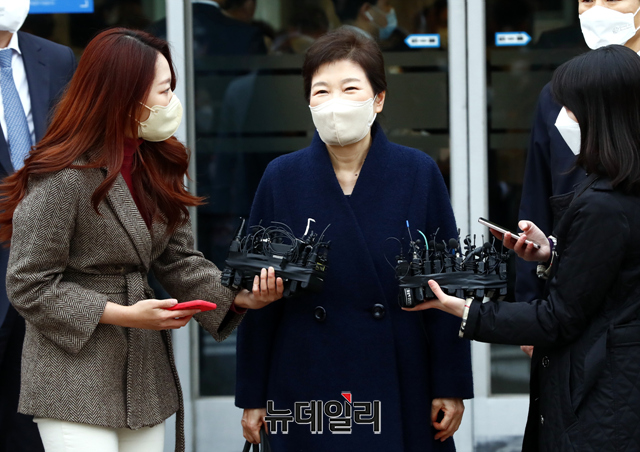 박근혜 전 대통령이 24일 오전 서울 강남구 삼성서울병원 본관에서 퇴원을 한 후 취재진의 질문에 답하고 있다.