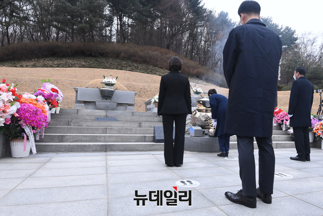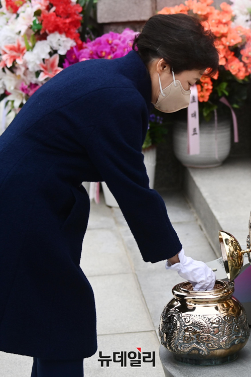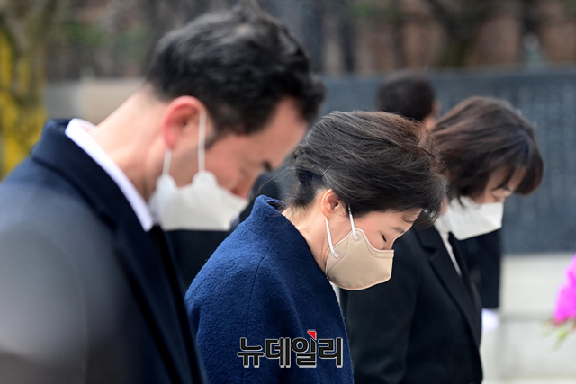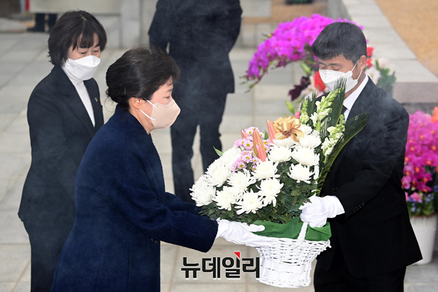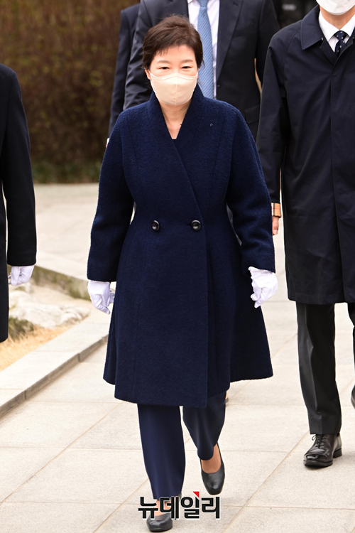 박근혜 전 대통령이 24일 오전 서울 동작구 국립서울현충원을 찾아 박정희 전 대통령 묘역을 참배하고 있다.