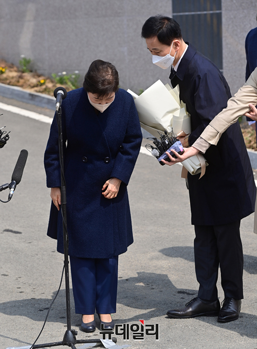 박 전 대통령은 이날 오전 8시 32분께 삼성서울병원에서 퇴원하며 "(건강이) 많이 회복됐다"며 "국민 여러분께 5년 만에 인사를 드리게 됐다" 짧은 인사말을 했다.