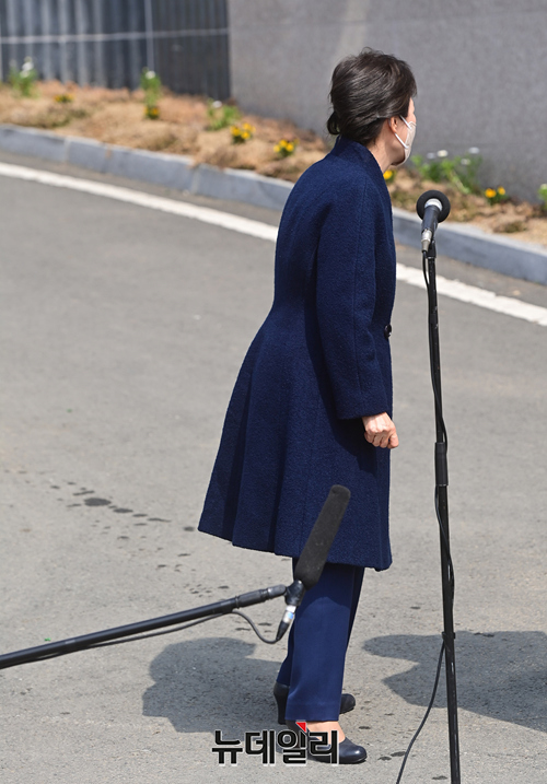 박근혜 전 대통령이 24일 오후 대구 달성군 유가읍에 마련된 사저에 입주하기 전 대국민 메시지를 발표하고 인사를 하고 있다.