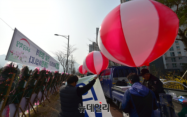 [포토] 朴 대구사저 도로에 설치된 축하화환 릴레이