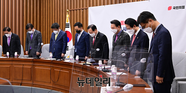 [포토] 서해수호의날 맞아 묵념하는 국민의힘 원내지도부