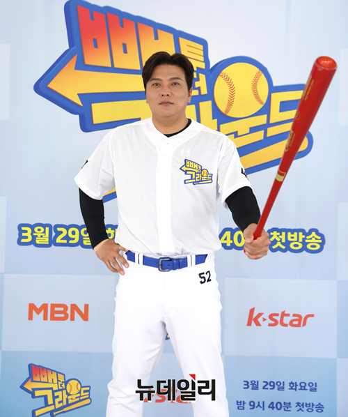 전 야구선수 김태균 25일 오후 온라인으로 진행된 MBN 새 예능 프로그램 '빽 투 더 그라운드' 제작보고회에서 포토타임을 갖고 있다. (사진=MBN)