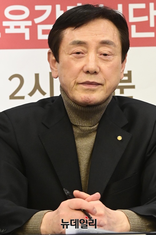 최명복 서울시교육감 예비후보가 25일 오후 서울 중구 한국프레스센터에서 열린 서울 중도·보수 교육감 후보단일화를 위한 정책 토론회에 참석해 있다.