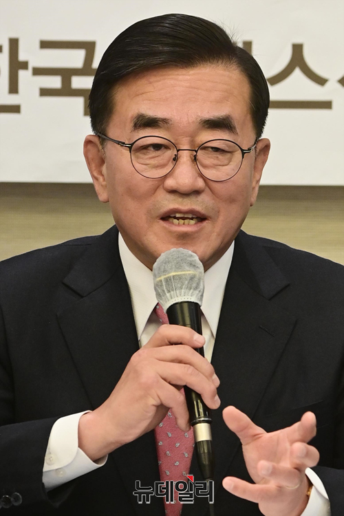 이대영 서울시교육감 예비후보가 25일 오후 서울 중구 한국프레스센터에서 열린 서울 중도·보수 교육감 후보단일화를 위한 정책 토론회에서 발언을 하고 있다.