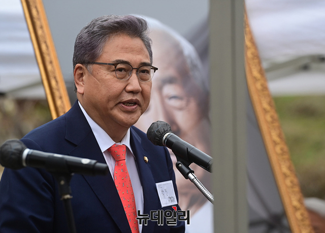 박진 국민의힘 의원이 26일 오후 서울 종로구 이화장에서 열린 우남 이승만 건국대통령 탄신 147주년 기념행사에서 인사말을 하고 있다.
