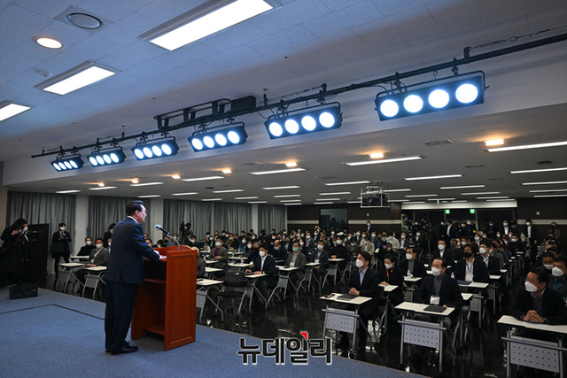 윤석열 대통령 당선인이 26일 대통령직인수위원회 워크숍에 참석해 발언하고 있다. (사진=인수위)