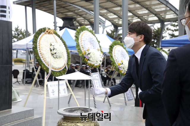 [포토] 천안함 46용사 제12주기 추모행사 참석한 이준석 대표