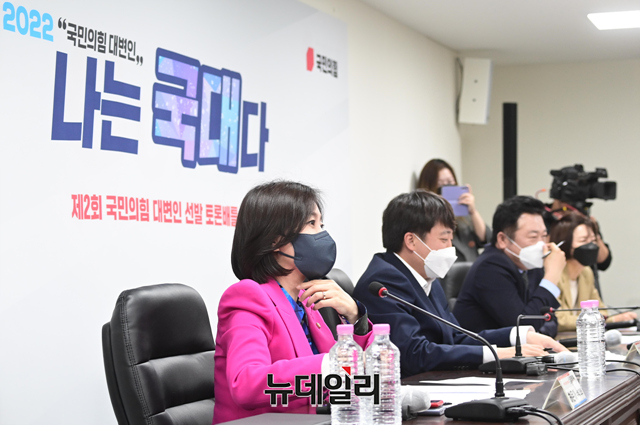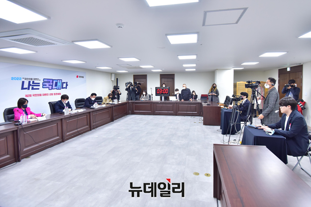 국민의힘 대변인 선발을 위한 '2022 나는 국대다 2기' 압박면접이 28일 오후 서울 여의도 국민의힘 중앙당사에서 열리고 있다.'2022 나는 국대다'는 당 대변인을 토론을 통해 선발하는 공개 오디션이다. 1차 심사를 통해 선정된 상위 100명은 중앙당사에서 면접을 통해 16강을 향한 경쟁을 펼친다.심사위원은 이준석 당 대표, 김용태 최고위원, 허은아 수석대변인, 김철근 당대표정무실장, 임승호 전 대변인, 양준우 전 대변인, 신인규 전 상근부대변인, 김연주 전 상근부대변인이다.