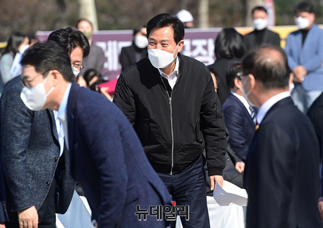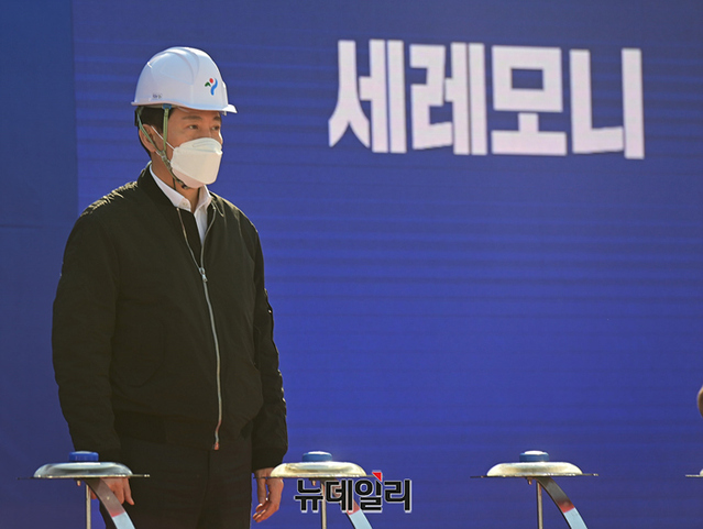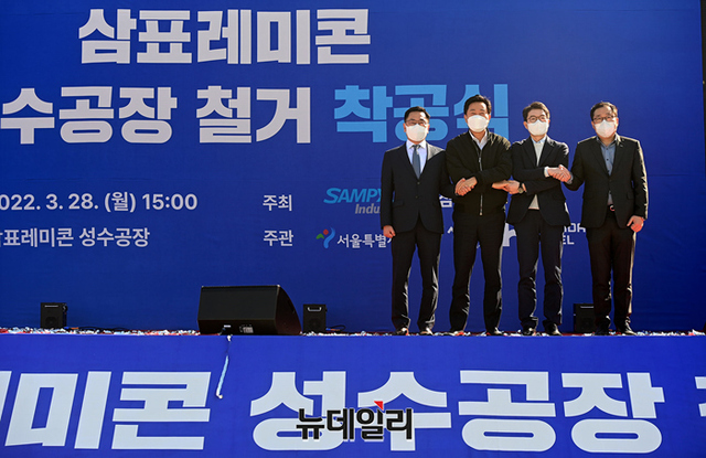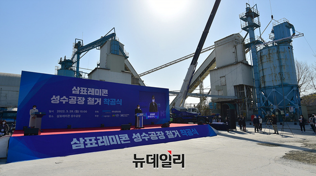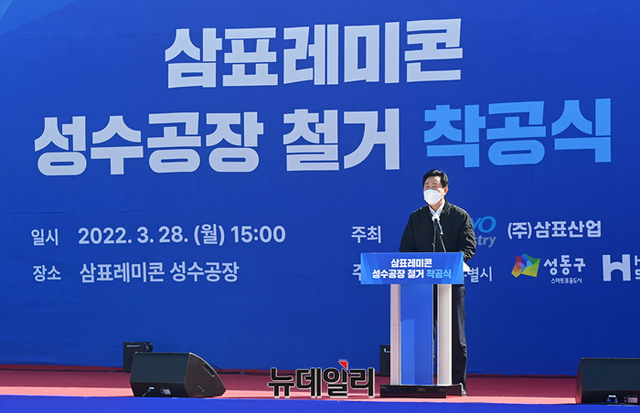 [포토] 삼표레미콘 성수공장 철거 착공식 참석한 오세훈 서울시장