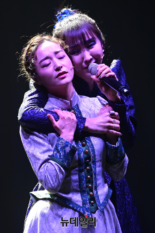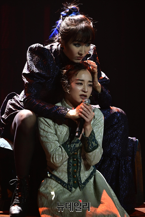 배우 전성민, 김려원, 김수연, 이영미가 29일 오후 서울 종로구 두산아트센터에서 열린 록뮤지컬 '리지' 프레스콜에서 하이라이트 장면을 선보이고 있다.'리지'는 1892년 미국 매사추세츠에서 일어난 미제 살인 사건 '리지 보든 사건' 실화를 모티브로 만들어진 뮤지컬이다.리지 역에는 전성민·유리아·이소정이, 엠마 역은 김려원·여은이, 앨리스 역에는 제이민·김수연· 유연정이, 브리짓 역에는 이영미·최현선이 각각 캐스팅됐다.6월 12일까지 서울 두산아트센터 연강홀에서 공연된다.