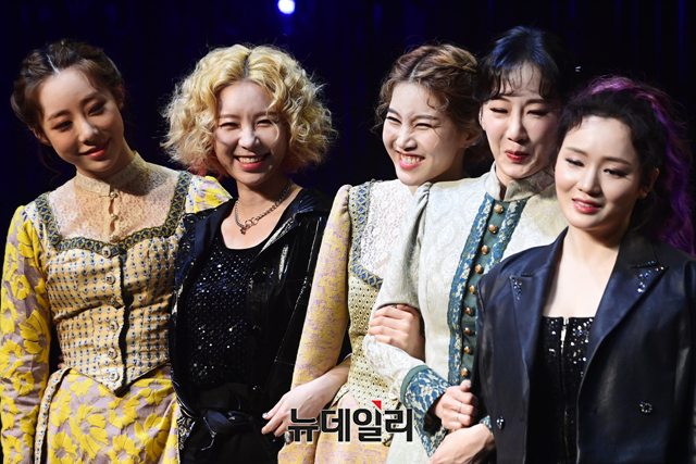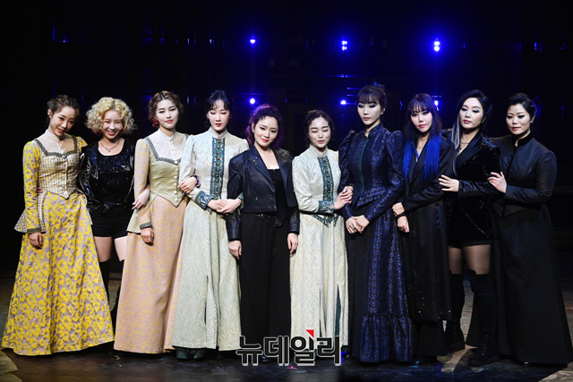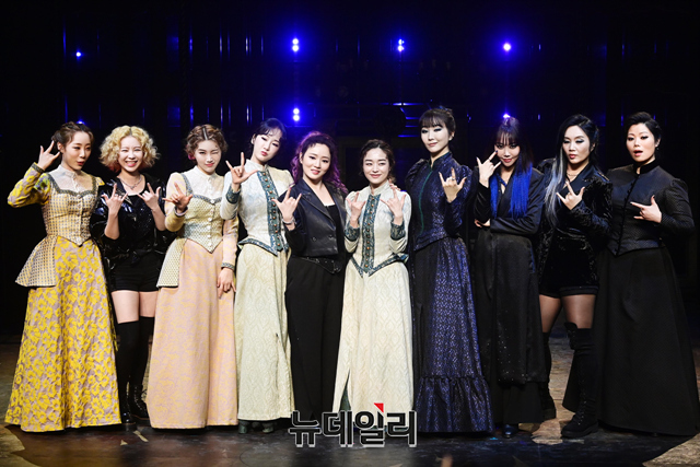 배우 이영미, 최현선, 제이민, 김수연, 유연정, 김려원, 여은, 전성민, 유리아, 이소정이 29일 오후 서울 종로구 두산아트센터에서 열린 록뮤지컬 '리지' 프레스콜에서 포즈를 취하고 있다.'리지'는 1892년 미국 매사추세츠에서 일어난 미제 살인 사건 '리지 보든 사건' 실화를 모티브로 만들어진 뮤지컬이다.리지 역에는 전성민·유리아·이소정이, 엠마 역은 김려원·여은이, 앨리스 역에는 제이민·김수연· 유연정이, 브리짓 역에는 이영미·최현선이 각각 캐스팅됐다.6월 12일까지 서울 두산아트센터 연강홀에서 공연된다.