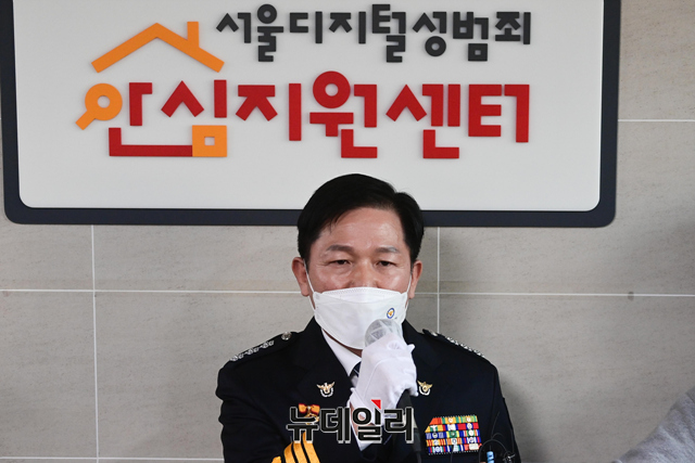 최관호 서울경찰청장이 29일 오후 서울 동작구 서울시여성가족재단에서 열린 서울시 디지털성범죄 안심지원센터 개관식에서 인사말을 하고 있다.