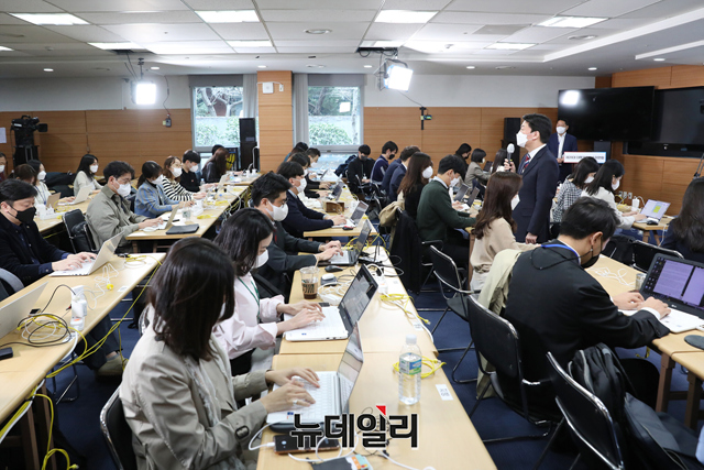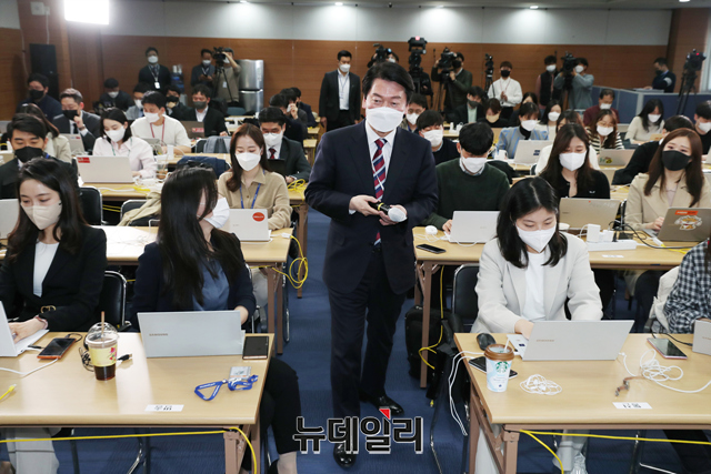 안철수 대통령직 인수위원장이 30일 오전 서울 종로구 인수위원회에서 진행된 기자간담회에서 "윤석열 정부 첫 내각에 참여하지 않겠다"고 말했다.