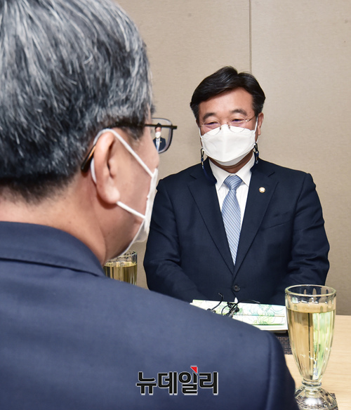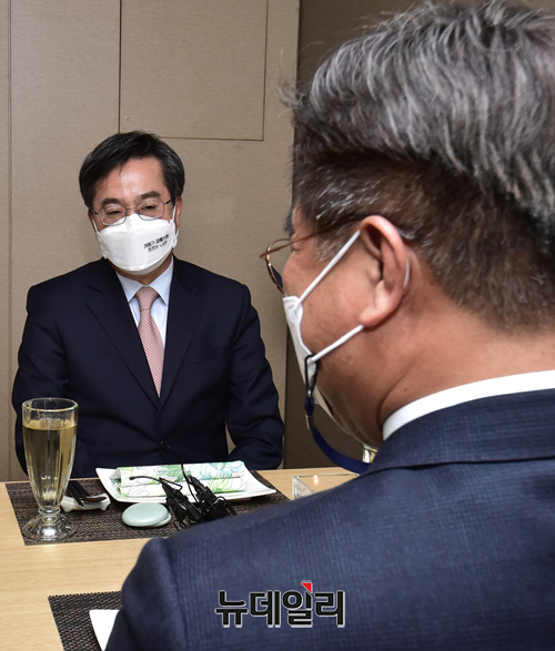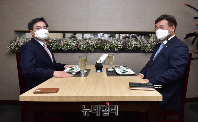윤호중 더불어민주당 공동비대위원장과 김동연 새로운물결 대표가 30일 서울 여의도 한 식당에서 오찬 회동을 갖고 있다. (사진=공동취재단)