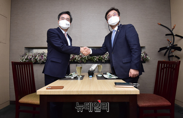 30일 오찬 갖고 합당 논의… "정치교체 공동 추진 기구를 설치" 합의김동연 행선지 발표 안 해… 민주당 "어디로 출마를 하든 중요한 역할"