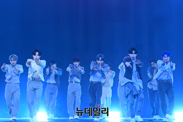 신인 아이돌그룹 나인아이(제원, 이든, 위니, 민준, 반, 베리, 서원, 태훈, 주형, 지호)이 30일 오후 서울 용산구 블루스퀘어에서 열린 첫 번째 미니앨범 '뉴 월드(NEW WORDL)' 발매 기념 쇼케이스에서 무대를 선보이고 있다.그룹 '나인아이'는 가수 박선주, 나윤권, 키썸, 허찬미 등이 소속된 퍼스트원엔터에서 처음으로 선보이는 10인조 보이그룹이다. 한국인 멤버 9명과 태국인 멤버 1명으로 구성됐다.타이틀곡 '패럴렐 유니버스'를 포함해 '인트로' '뷰티 인사이드' '웨이스티드 유스' '데이즈 데이즈'까지 총 5곡이 수록 됐다.