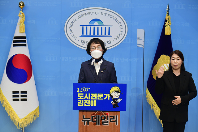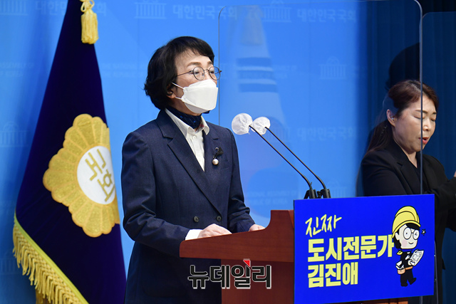 김진애 전 국회의원이 30일 오전 국회 소통관에서 6·1 전국동시지방선거 서울시장 출마 선언을 하고 있다.